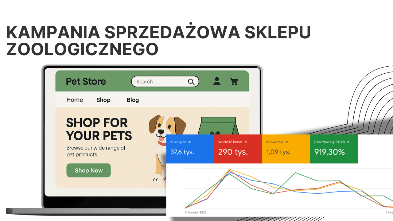 Dla naszego klienta z branży zoologicznej zaprojektowaliśmy kompleksową kampanię sprzedażową, której głównym celem było zwiększenie liczby konwersji oraz budowanie lojalności klientów. Dzięki synergii precyzyjnej strategii i skutecznych działań reklamowych osiągnęliśmy imponujące rezultaty: