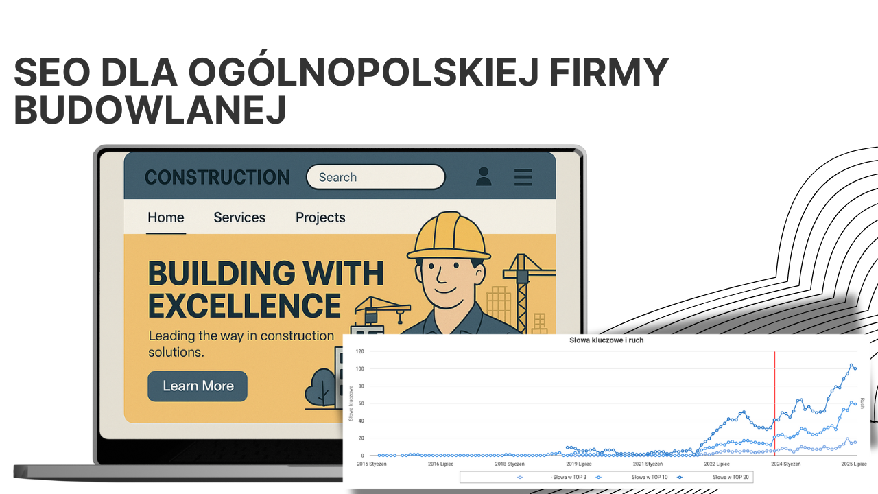 W ramach współpracy z klientem z branży budownictwa i infrastruktury, nasza firma wdrożyła kompleksową strategię SEO, która przełożyła się na średni wzrost widoczności w Google o 400 % oraz znaczący wzrost liczby zapytań B2B.