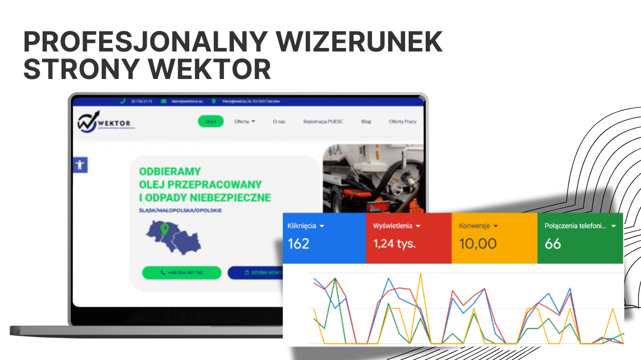 Przeprowadziliśmy kompleksowy redesign serwisu Wektor, lidera w branży gospodarki odpadami i transportu materiałów niebezpiecznych. Celem było stworzenie strony, która nie tylko informuje – ale buduje wizerunek rzetelności i kompetencji.